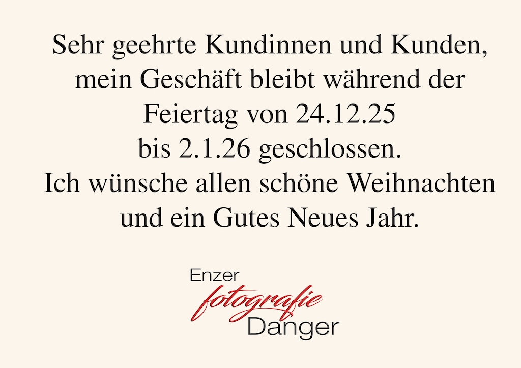 Seit über 70 Jahren ist Enzer Fotografie Ihr kompetenter Ansprechpartner in Sachen Fotografie in Landsberg am Lech und Umgebung. Seit dem 01. Februar 2022 führe ich für Sie die Enzer-Tradition weiter. Das Fotostudio erwartet Sie in einem neuen, modernen Look, mit Fokus auf das Wesentliche: auf Sie!